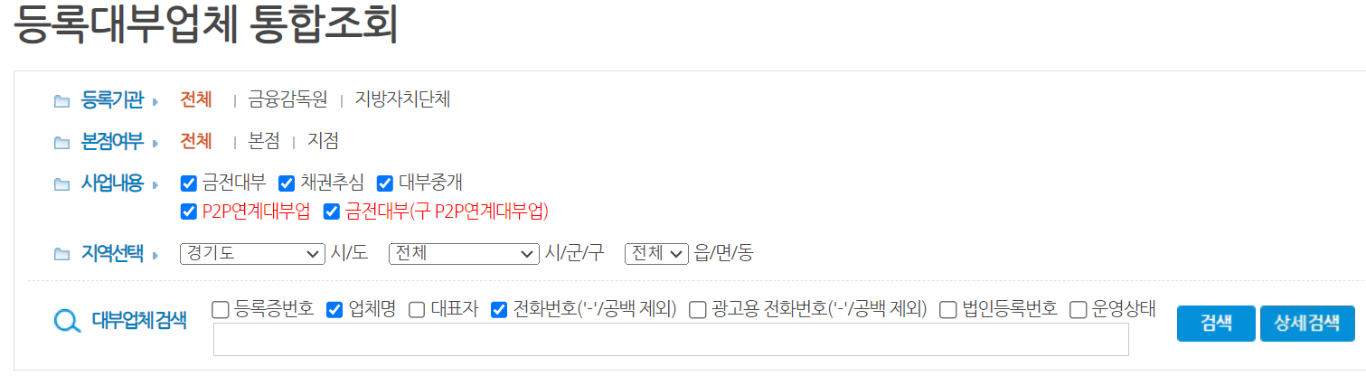 2-3. 서민금융진흥원 대부업체 전화번호 조회