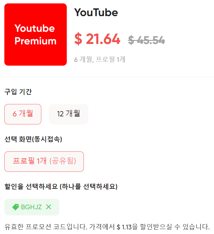 2. 유튜브 프리미엄 5% 프로모션 할인코드
