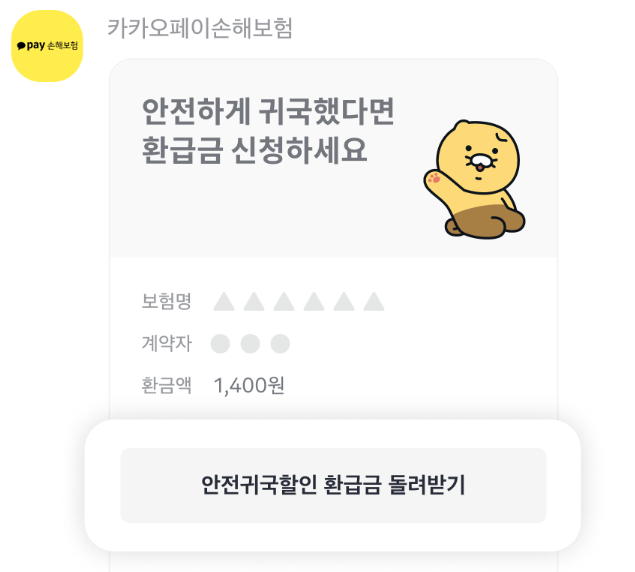 | 3️⃣ 안전 귀국 환급금 | 사고 없이 여행을 마치고 귀국하면 보험료의 10%를 돌려받을 수 있어요. |
